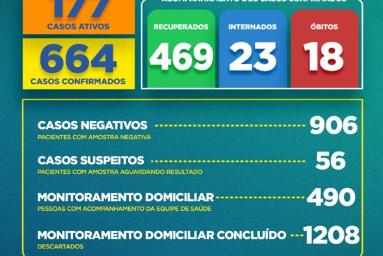 A Prefeitura divulgou, através da Secretaria Municipal de Saúde (SESAU), mais uma atualização sobre quadro epidemiológico do novo coronavírus em Alagoinhas. Os dados desta terça-feira (7) apontam para mais 26 pacientes que tiveram alta, após infecção pela COVID-19, e sobe,