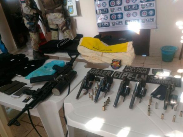 De acordo com a Secretaria de Segurança Pública (SSP-BA), com o bando, foram apreendidos um fuzil airsoft, cinco revólveres, munições, cinco coletes balísticos, uma banana de dinamite e máscaras. Outros dois integrantes conseguiram fugir.
