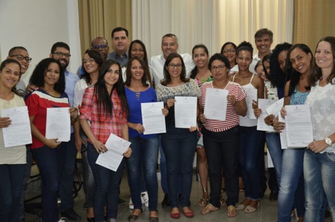 Os secretários Geraldo Melo (Relações Institucionais), Fabrício Faro (SEDUC) e Rodrigo Matos (SESAU), participaram do ato de posse dos novos profissionais – sendo três aprovados no Concurso Público 001/2016, quatro aprovados no Processo Seletivo 001/2013 e treze aprovados no Processo Seletivo 001/2015-, juntamente com o coordenador de Concursos e Seleções, Antonio Alves.
