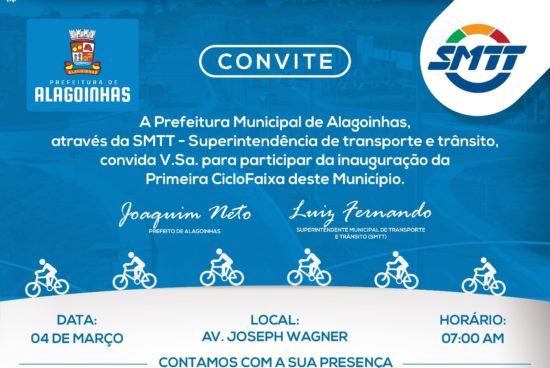 A Prefeitura Municipal, através da Superintendência de Transporte e Trânsito (SMTT), vai inaugurar, no próximo domingo, 4 de março, a primeira ciclofaixa do município.
