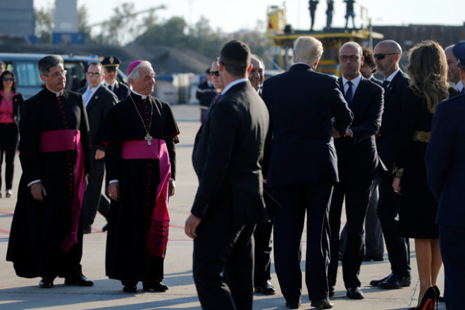 O governante e a sua esposa, Melania Trump, foram recebidos pela delegação italiana, liderada pelo ministro de Exteriores, Angelino Alfano, bem como por representantes eclesiásticos.